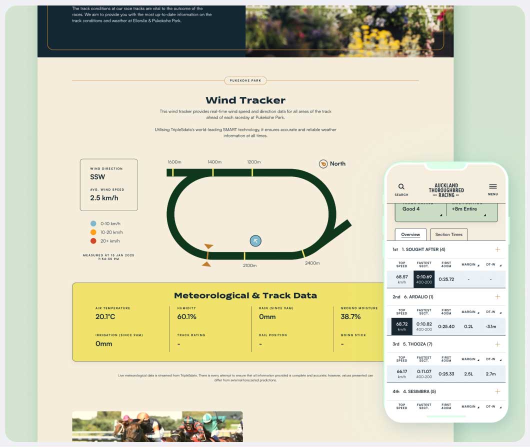 Originally, the brand and venues were fragmented across multiple sites. We consolidated them into a single unified platform, leveraging the new design system that both connects the brands, yet maintains a clear distinction between them. The new website integrates with TripleSdata to allow for real-time race results, live track weather conditions, and a streamlined booking and event calendar system.