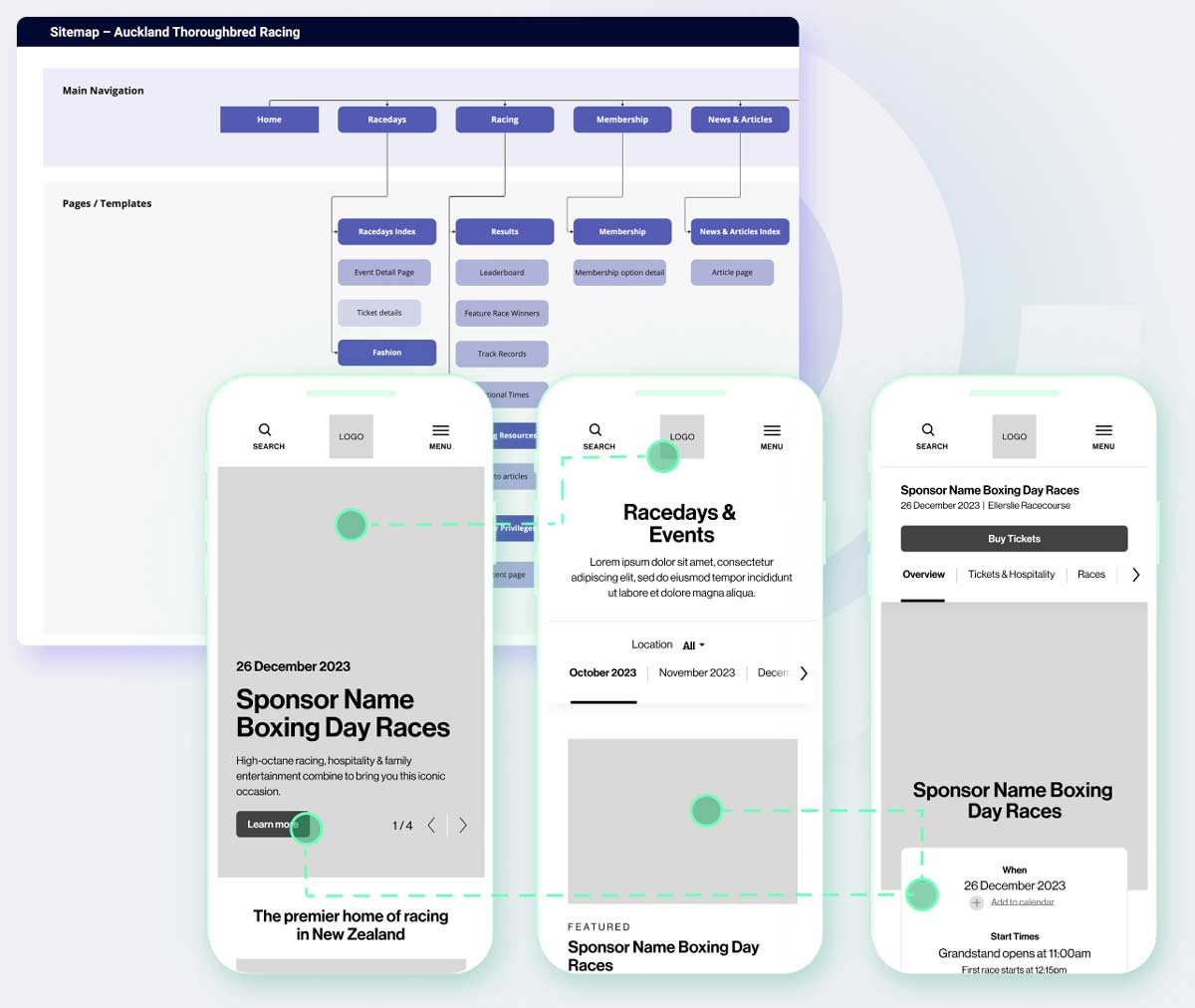 Interactive wireframes enabled real-time feedback and iteration, shaping a user experience that feels intuitive and effortless—whether discovering upcoming race days, exploring hospitality options, or booking an event.